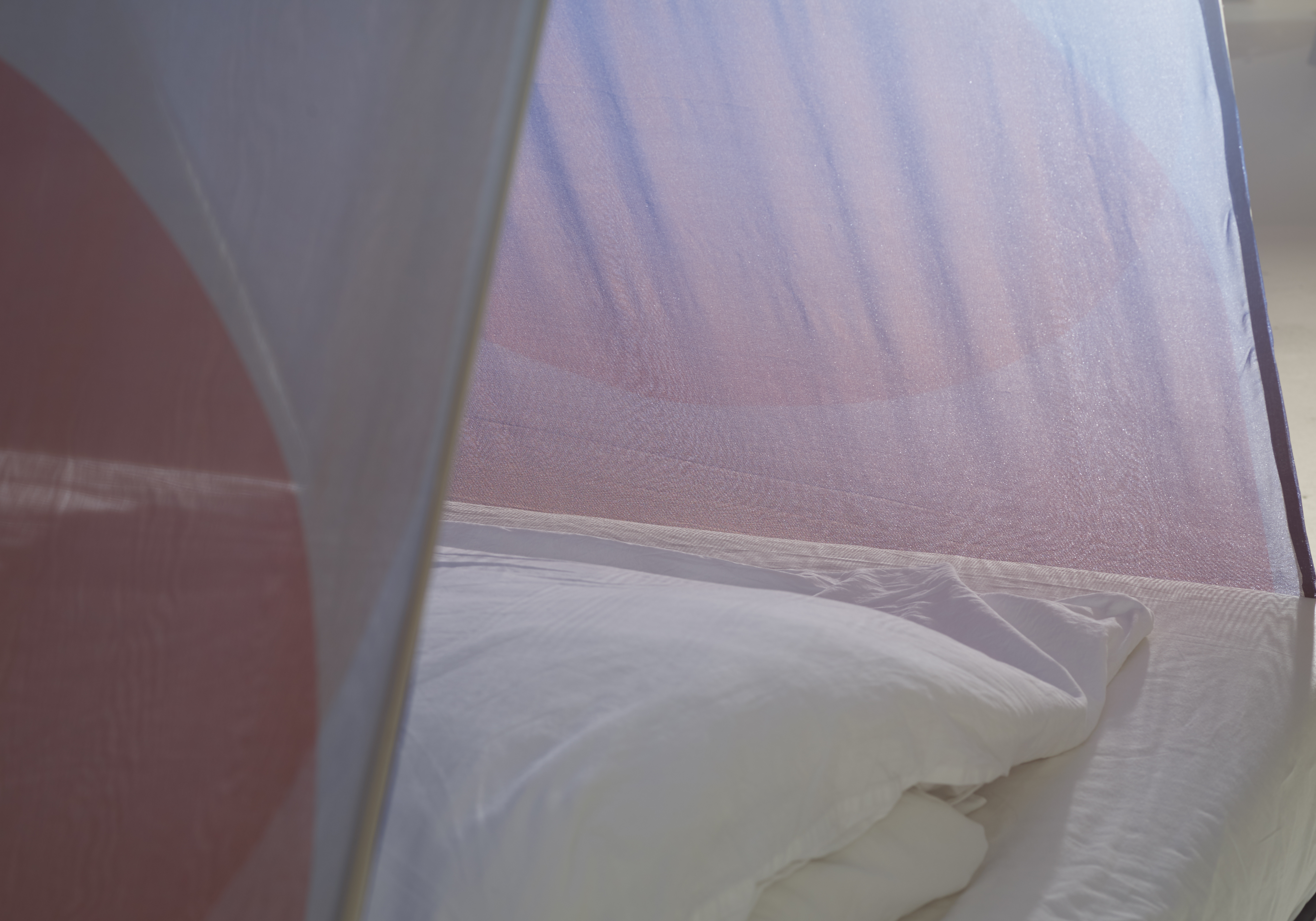 The Oneiri collection is a set of room dividers to be placed around the bed.